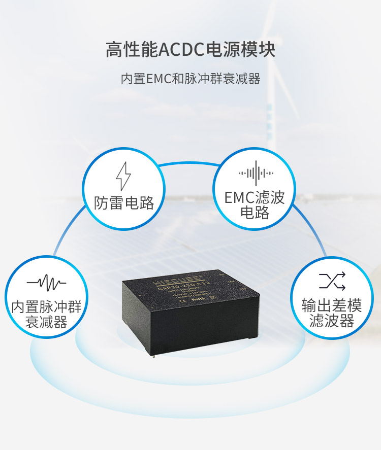 GAP系列—是HIECUBE为客户提供的小型封装形式的高性能模块电源。该系列电源具有交直流两用宽电压输入,内置防雷防浪涌电路,内置差模、共模滤波,效率高达83 %(全系列同步整流)。电源采用灌封封装,具有防尘和防潮功能。本系列电源符合EN55032 Class B电磁兼容(EMC)特性和Class Ⅱ 隔离级别(安规),典型电路即可通过认证测试。